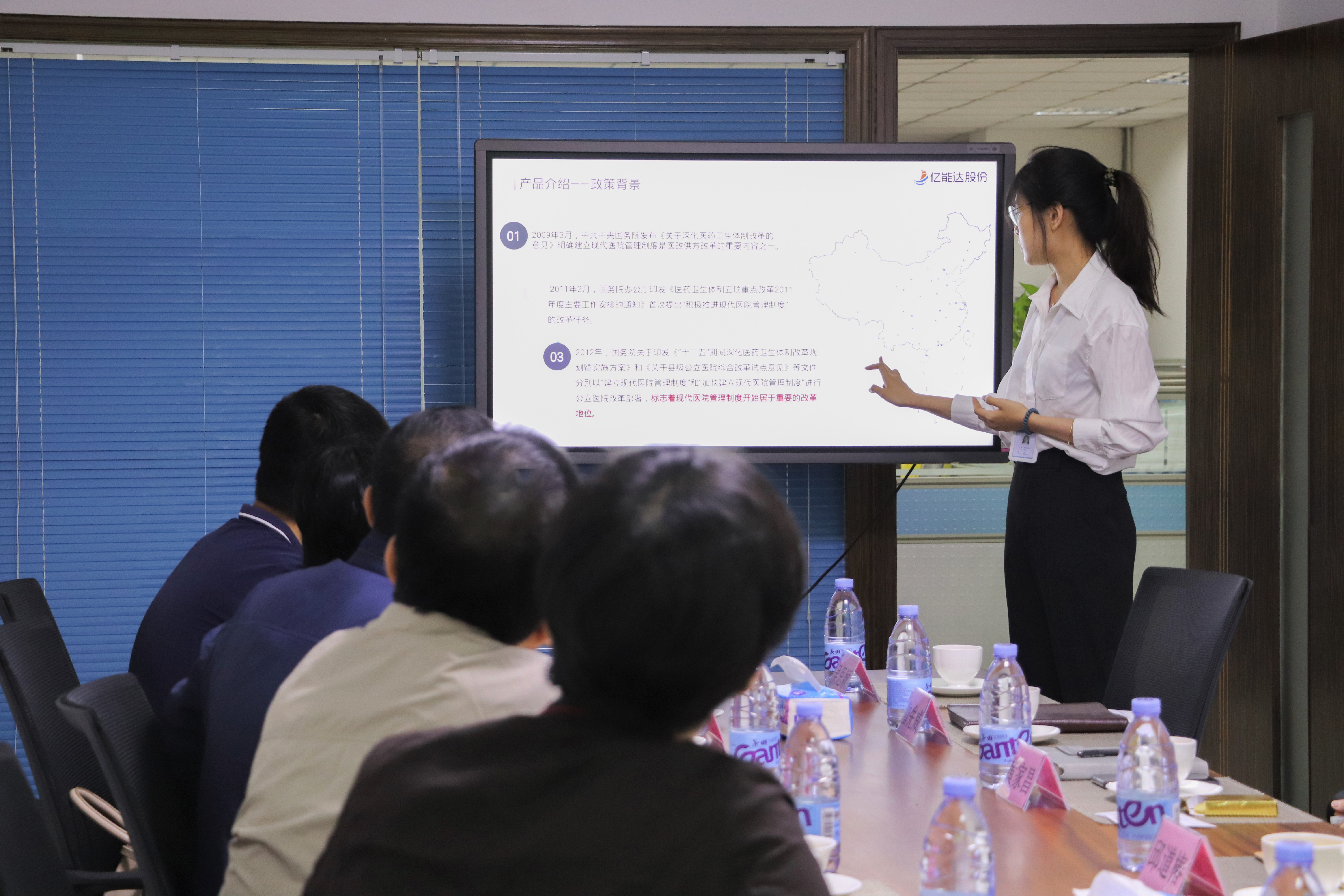 会上,我司相关业务人员围绕公司核心产品、经营业绩、财务数据及市场占有情况等内容进行详细介绍。期间,调研团队对我司医疗信息化专业能力及未来成长性给予了充分肯定。