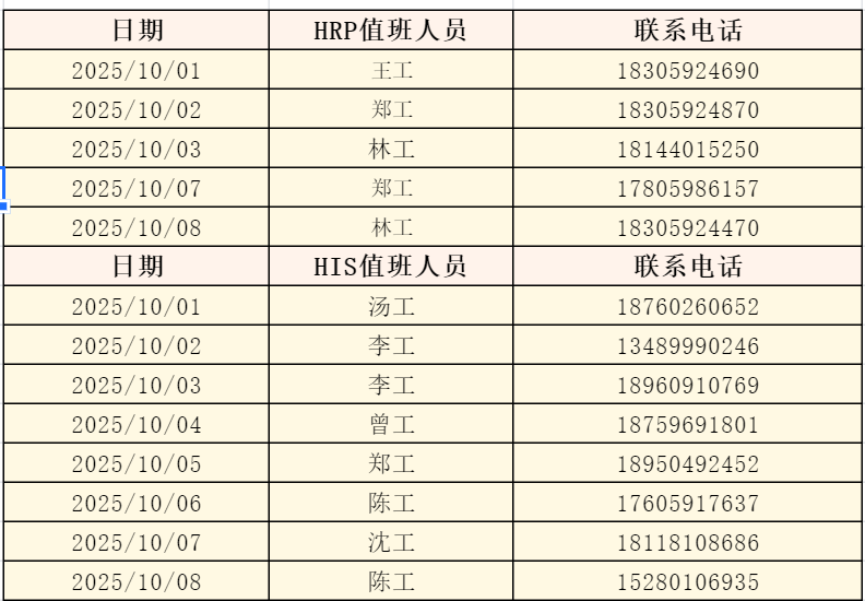 三、2025年国庆假期技术支持值班表